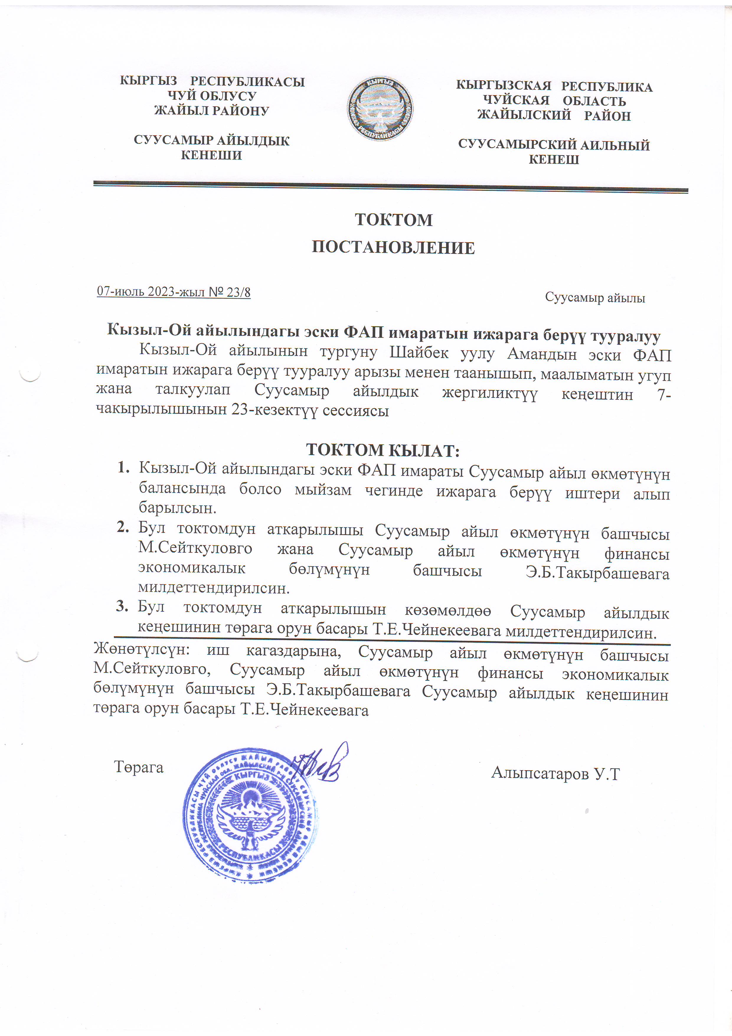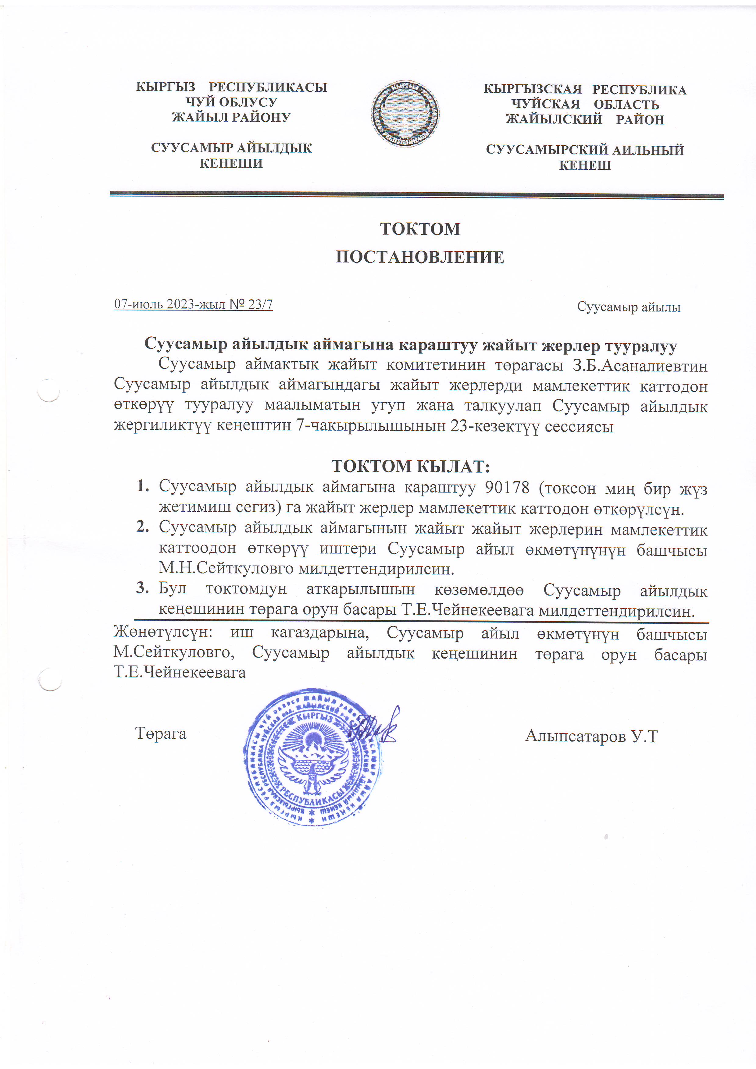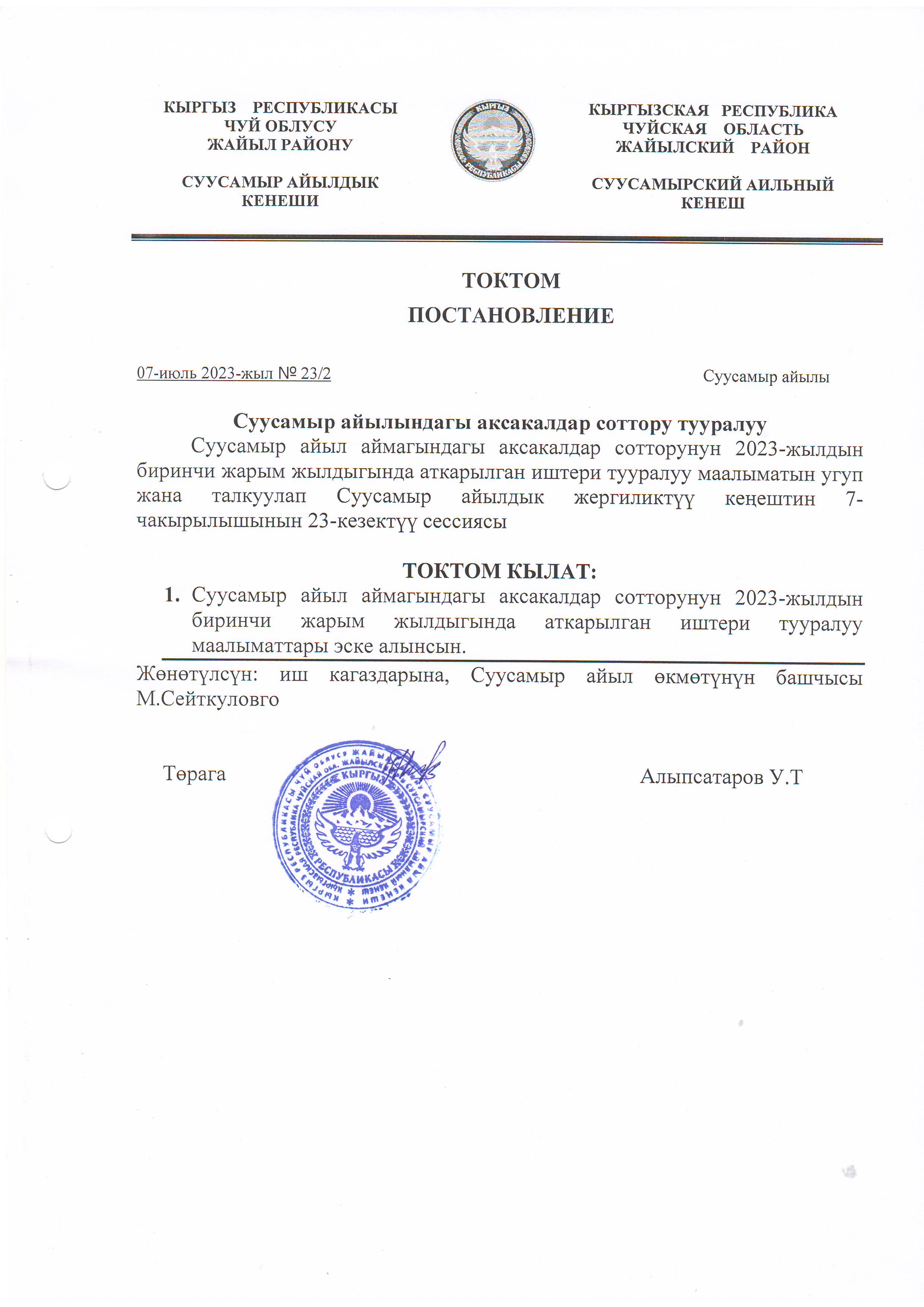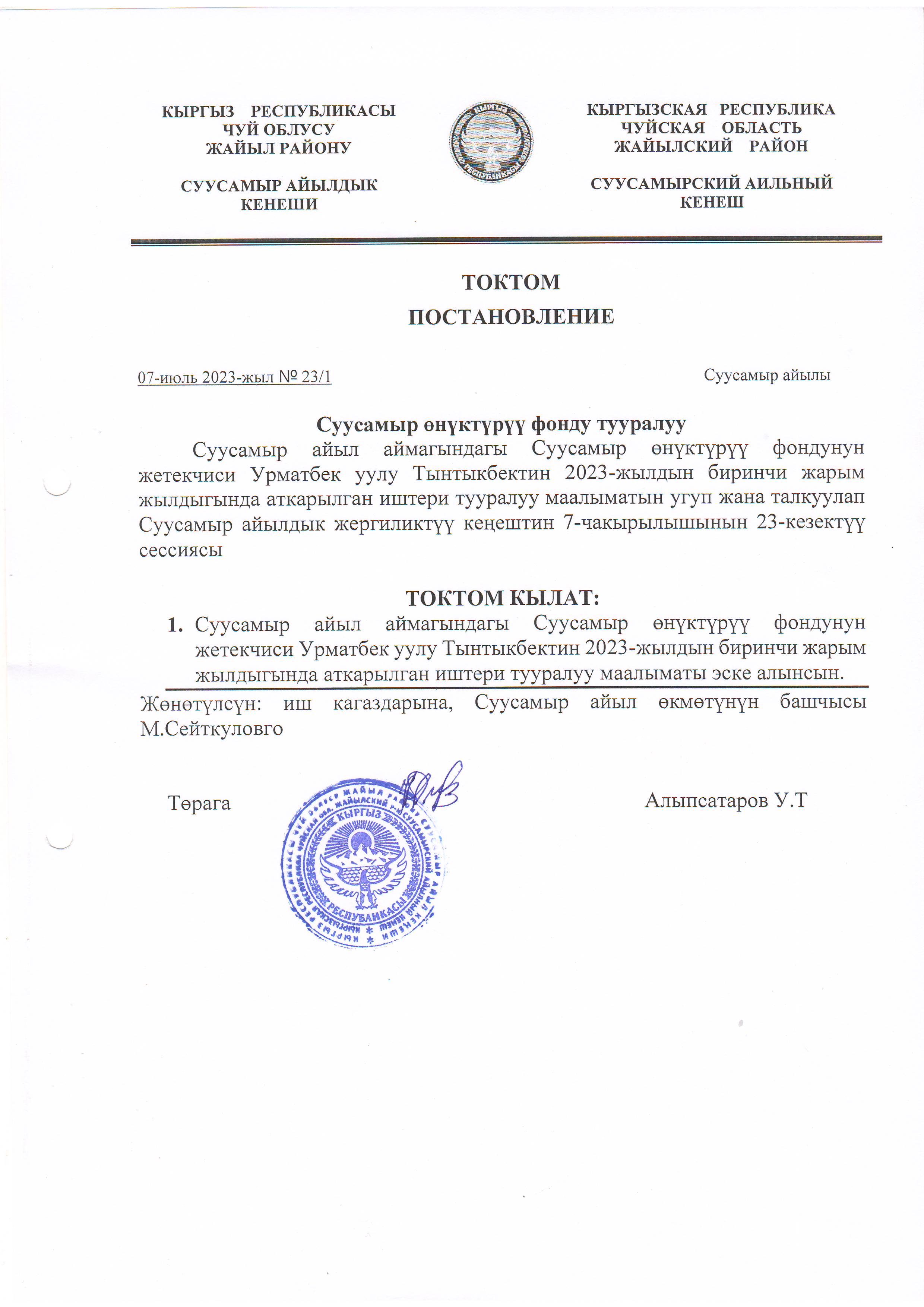 Жергиликтүү кеңештин 07-июль 2023-жыл токтомдору
